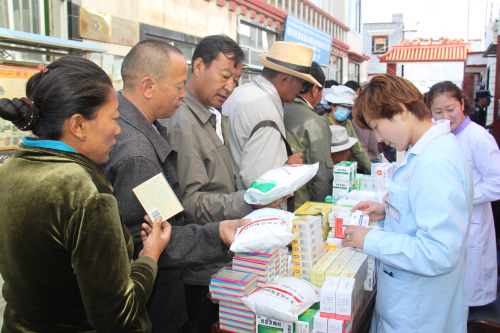 根據(jù)自治區(qū)工商聯(lián)《關(guān)于深化區(qū)直機(jī)關(guān)在職黨員到社區(qū)服務(wù)群眾活動(dòng)》的統(tǒng)一安排:阜康醫(yī)藥有限公司四個(gè)黨支部,在張德才總院長(zhǎng)的帶領(lǐng)下,一行8人在2015年8月8日上午到拉薩市城關(guān)區(qū)嘎瑪貢桑社區(qū)進(jìn)行義診活動(dòng),帶著1.5萬(wàn)余元藥品和便攜式B超,心電圖等。在半天時(shí)間內(nèi)貢義診380余人,為社區(qū)群眾進(jìn)行了測(cè)量血壓、發(fā)放藥品、健康咨詢(xún)等,受到了社區(qū)群眾的熱烈歡迎。期間正在慰問(wèn)群眾的自治區(qū)政協(xié)副主席阿沛晉源,和區(qū)統(tǒng)戰(zhàn)部副部長(zhǎng)、區(qū)工商聯(lián)黨組副書(shū)記李瑞富等領(lǐng)導(dǎo)的高度評(píng)價(jià)。