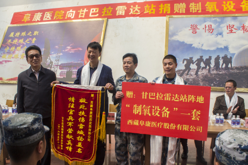 2016年5月11日上午,王斌董事長在捐贈儀式上講到:“阜康醫(yī)院自建院以來,始終秉承‘用我們的知識和良知為人類健康服務’的辦院宗旨,堅持發(fā)展不忘百姓、不忘社會。這次我們向甘巴拉雷達站的子弟兵們捐贈這套制氧設備,希望能夠為大家創(chuàng)造更好的工作、生活環(huán)境,希望能為駐守祖國邊疆的子弟兵們貢獻一份力量,在此,我謹代表阜康集團全體員工向駐守在甘巴拉雷達站的人民解放軍全體指戰(zhàn)員表示最真摯的敬意。”