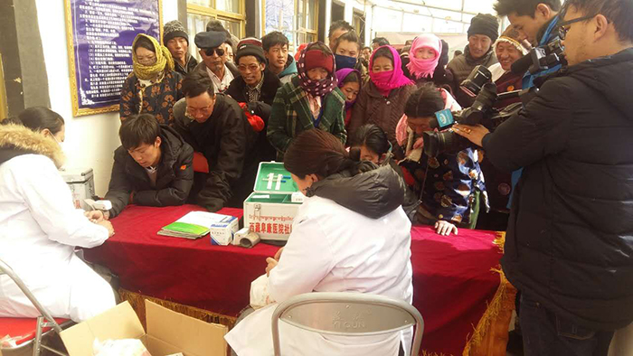 義診活動(dòng)在下午三點(diǎn)半開(kāi)始,前來(lái)就診咨詢的群眾絡(luò)繹不絕。醫(yī)務(wù)人員在為患病群眾把脈號(hào)診、開(kāi)處方的同時(shí),結(jié)合那曲縣羅瑪鎮(zhèn)群眾常見(jiàn)病、多發(fā)病及高海拔地區(qū)的氣候特點(diǎn),給當(dāng)?shù)厝罕娞岢隽巳粘I铒嬍辰ㄗh,在疾病預(yù)防、降低常見(jiàn)病發(fā)病率方面提供生活指南。義診期間,醫(yī)療服務(wù)小分隊(duì)醫(yī)務(wù)人員加班加點(diǎn),共為羅瑪鎮(zhèn)的400余名群眾進(jìn)行了義診檢查,發(fā)放藥品價(jià)值2萬(wàn)余元,在為患病群眾解除病癥、減輕病痛的同時(shí),切實(shí)溫暖了廣大群眾的心。