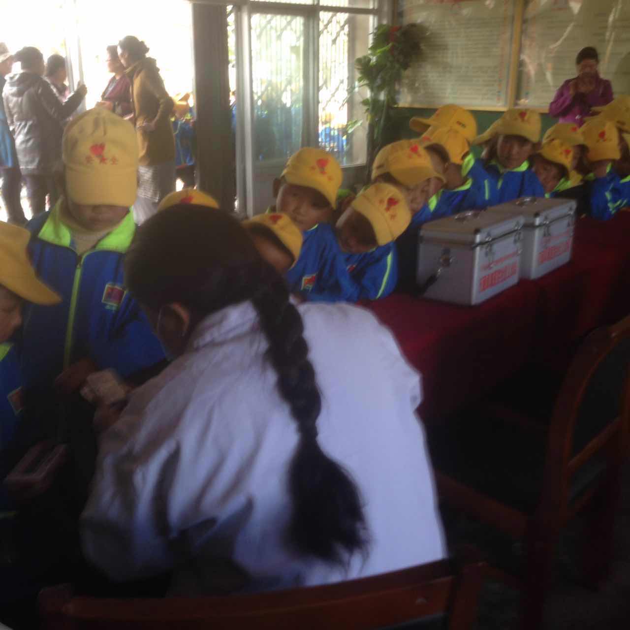 31日上午8點(diǎn)半左右,西藏阜康醫(yī)院社區(qū)義診隊(duì)兩名主要成員才仁、卓瑪次仁乘坐義診專用車,載著價(jià)值25000元左右的藥品,從拉薩市區(qū)出發(fā)前往墨竹工卡縣甲瑪鄉(xiāng)中心小學(xué)。經(jīng)過1個(gè)小時(shí)40分鐘的顛簸路程,本報(bào)記者會(huì)同義診隊(duì)終于抵達(dá)目的地。盡管現(xiàn)場下起了小雨,但這始終沒有阻擋孩子們的熱情,甲瑪鄉(xiāng)中心小學(xué)的285名小學(xué)生正在學(xué)校教學(xué)樓前,耐心等待義診隊(duì)的到來。10點(diǎn)10分左右,孩子們?cè)诶蠋煹囊龑?dǎo)下依次接受體檢,醫(yī)生為他們檢查了口腔、腹腔、測量心跳,并發(fā)放了藥品。一個(gè)個(gè)溫馨友善的提醒,一盒盒充滿愛意的藥品,都讓孩子們感受著全社會(huì)的關(guān)愛。