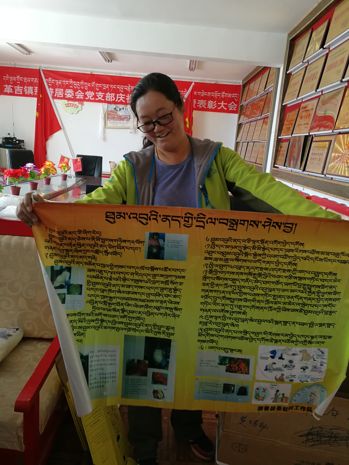 為了做好包蟲病宣傳工作,她自己設(shè)計了很多藏語版的包蟲病宣傳資料,挨家挨戶宣傳指導(dǎo),為了與群眾打成一片,她自學(xué)家電維修,誰家里電器壞了第一個準是給她打電話。