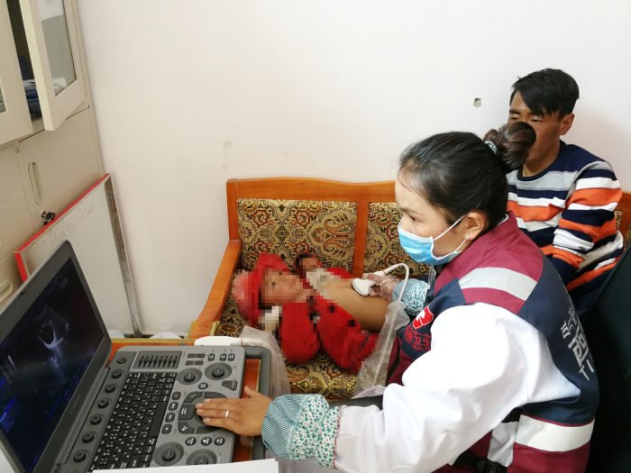 旺姆(化名),三歲,是同爸爸媽媽一起來的篩查中心,旺姆有一雙大大的眼睛,聲音非常甜美,看我在照相,害羞地往媽媽的背后躲,又好奇地探出小腦袋,非常可愛,爸爸媽媽體檢時她安靜地站在旁邊看,不哭不鬧,是個安靜的小寶寶,輪到小旺姆體檢時,爸爸把她放在床上,格桑拉吉讓她躺下,小旺姆乖乖地躺好任由探頭在她的小肚子上劃來劃去。突然格桑拉吉臉色沉重,從衣服包里掏出手機,開始拍B超機屏幕,我心里一緊,悄悄問她,她只是點頭,三歲的旺姆(化名)被診斷為疑似病例。