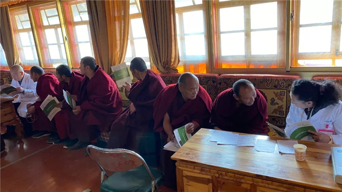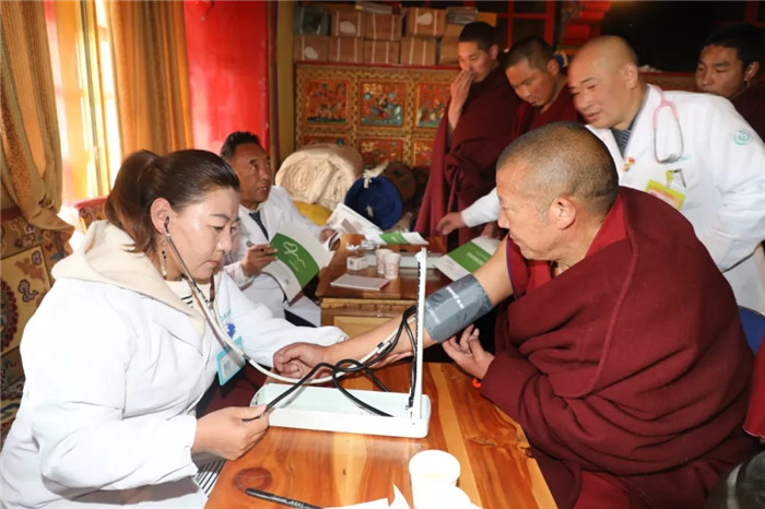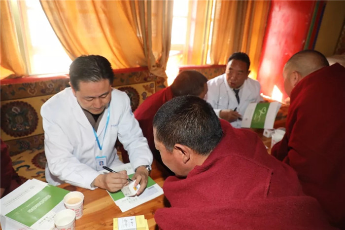 據(jù)了解,甘丹寺管委會安排223名僧侶于2019年12月19日至2020年1月15日來我院體檢中心分批進行了身體檢查,為了方便僧侶們取讀報告,西藏阜康醫(yī)院秉持著“用我們的知識和良知為人類健康服務”的企業(yè)宗旨,特意安排專家義診組帶著大家的體檢報告來到寺廟,為大家免費進行報告解讀并針對性的發(fā)放藥物。