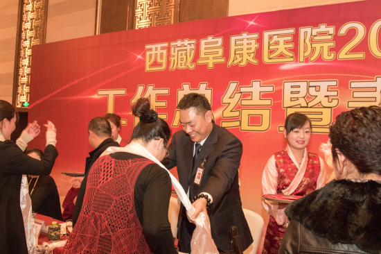 2016年1月19日下午3點半,西藏阜康醫(yī)院2015年度總結(jié)暨表彰大會在香格里拉大酒店隆重舉行,本次2015年度總結(jié)表彰大會由敖德秀副院長主持,王斌董事長、陳彬總經(jīng)理、張德才總院長、劉連福副院長、張治副院長、李君副院長、何靜院長助理等各位院領(lǐng)導(dǎo)及三家醫(yī)院、體檢中心全體員工參加本次會議。
