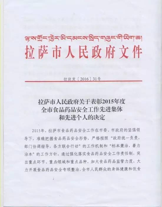 本次會(huì)議還就2015年度在全市食品藥品安全工作中表現(xiàn)突出的市農(nóng)牧局等19個(gè)縣(區(qū))、單位給予了表彰。西藏阜康醫(yī)藥發(fā)展有限公司也因在2015年食品藥品監(jiān)督管理工作中表現(xiàn)突出榮獲表彰并獲得“2015年全市食品藥品安全工作先進(jìn)集體”榮譽(yù)稱號(hào)。劉瀟瀟總經(jīng)理代表阜康醫(yī)藥發(fā)展有限公司接受了本次表彰。她表示阜康醫(yī)藥發(fā)展有限公司能夠獲得本次表彰是整個(gè)阜康的驕傲,在今后的工作中我們一定會(huì)珍惜榮譽(yù),再接再厲,充分發(fā)揮示范帶頭作用,努力再創(chuàng)工作佳績(jī),為西藏食品藥品安全作出自己的貢獻(xiàn)。