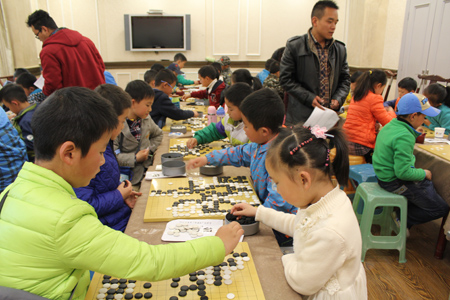 據(jù)棋院陳學(xué)滸老師介紹,拉薩棋院是西藏自治區(qū)的正規(guī)棋院,于2015年3月26日在拉薩市郵政賓館正式掛牌成立,棋院目前共有三名老師執(zhí)教,100名學(xué)員。陳學(xué)滸老師講到,圍棋比賽非常鍛煉參賽選手意志,選手在前一輪比賽結(jié)束后不久立馬參加下一輪比賽,很多選手尚未從上一輪失敗的陰霾中走出來就要參加下一輪比賽,不會(huì)調(diào)節(jié)情緒的選手大多會(huì)輸?shù)艚酉聛淼谋荣?,所以圍棋比賽很容易看出選手的心態(tài)及意志。比賽現(xiàn)場(chǎng)筆者也觀察到,小朋友聚在一起大多很鬧騰,小孩們總是不停地跑來跑去嬉笑打鬧,整個(gè)棋院像是過節(jié)般熱鬧,但是比賽一開始,他們立馬安靜下來,個(gè)個(gè)屏息凝神、沉著冷靜架勢(shì)甚是老練,完全沒有了剛才的鬧騰勁兒。由此筆者感慨老祖宗留下來的東西果然是寶貝,圍棋不僅能磨練人的意志,增強(qiáng)人的全局意識(shí),還能讓人靜下心來認(rèn)真思考,學(xué)習(xí)圍棋確實(shí)是人生比較正確的選擇。