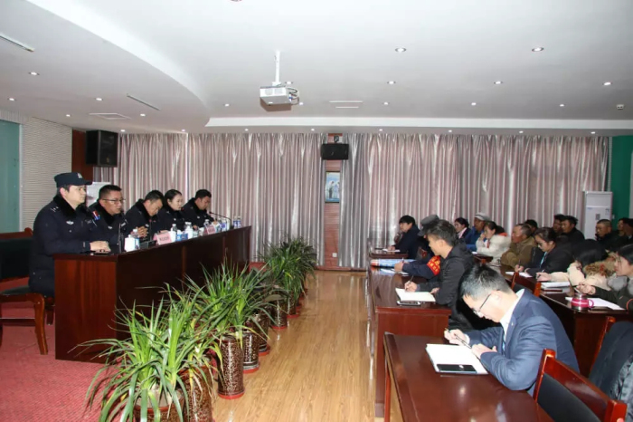城關區(qū)公安局執(zhí)法監(jiān)督大隊大隊長張?zhí)裣虼蠹移占傲司S護社會穩(wěn)定對于每個社會組織以及每個人的重要意義,希望大家充分理解公安民警的工作,并主動配合公安機關的各項維穩(wěn)措施;張?zhí)裢瑫r傳達了“掃黑除惡、打非治亂”行動在我區(qū)的推進情況,希望大家從自我做起,人人為“掃黑除惡、打非治亂”行動做貢獻,以更好地保障自身人身和財產(chǎn)安全。