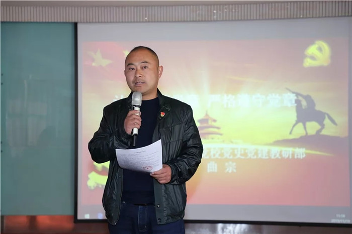 曲宗副教授首先明確了黨章 “根本大法”的地位,指出黨章是規(guī)范和指導(dǎo)黨的工作、黨內(nèi)活動(dòng)、黨的建設(shè)的根本依據(jù)。隨后曲宗副教授介紹了黨章的歷史沿革,以及十九大修改黨章的歷史意義和重要內(nèi)容,號(hào)召每一名黨員認(rèn)真學(xué)習(xí)黨章,嚴(yán)格遵守黨章,時(shí)刻與黨中央保持一致,自覺(jué)做到“兩個(gè)維護(hù)”。要求每一名黨員都把黨章作為政治思想建設(shè)方面的X光機(jī),每年對(duì)照黨章給自己“體檢”一下,紅紅臉、出出汗,牢記入黨初心、遵守黨的紀(jì)律,維護(hù)一名黨員的思想行為純潔性。