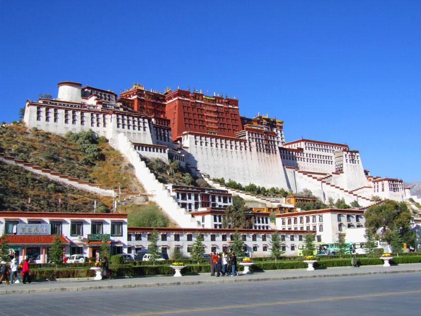 布達拉宮位于拉薩市紅山之上,最初為吐蕃王朝贊普松贊干布為迎娶尺尊公主和文成公主而興建。1645年(清順治二年)清朝屬國和碩特汗國時期護法王固始汗和格魯派攝政者索南群培重建布達拉宮之后,成為歷代達賴喇嘛冬宮居所,以及重大宗教和政治儀式舉辦地,也是供奉歷世達賴喇嘛靈塔之地,舊時與駐藏大臣衙門共為統(tǒng)治中心。今天的布達拉宮已是世界聞名,其文化價值無法估量。