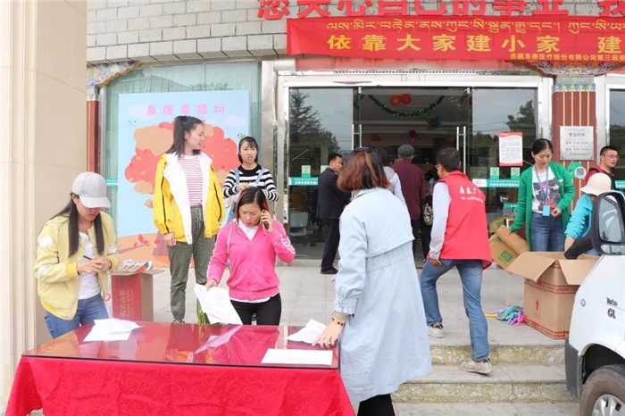 西藏阜康醫(yī)療股份有限公司黨委書(shū)記、董事長(zhǎng)在活動(dòng)現(xiàn)場(chǎng)為探親的阜康親人們獻(xiàn)上祝福,并表示親人們?cè)诓仄陂g,如遇上困難,公司會(huì)全力提供幫助。