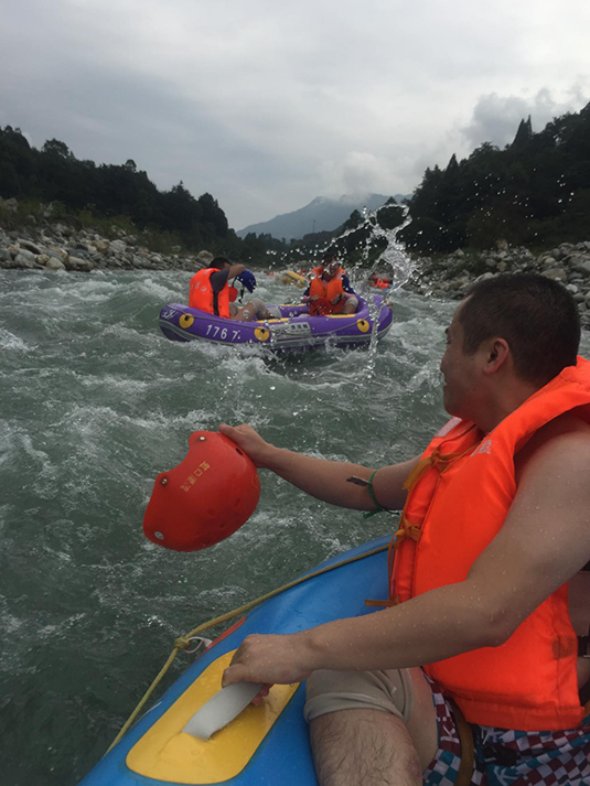 8月26日,終于迎來了最主要的團(tuán)隊活動項目——漂流!同事們自行男女兩兩結(jié)合,在激蕩的漂流中,水戰(zhàn)、追趕、嬉戲,平時難以交流一句話的其他部門同事也開始互相合作奮起反擊,男同事和女同事之間也逐漸劃開原有的尷尬氣氛,盡情暢快的交談!頃刻間,沒有職位大小,沒有年齡層次,大家像是一家人,彼此信任,彼此釋放。