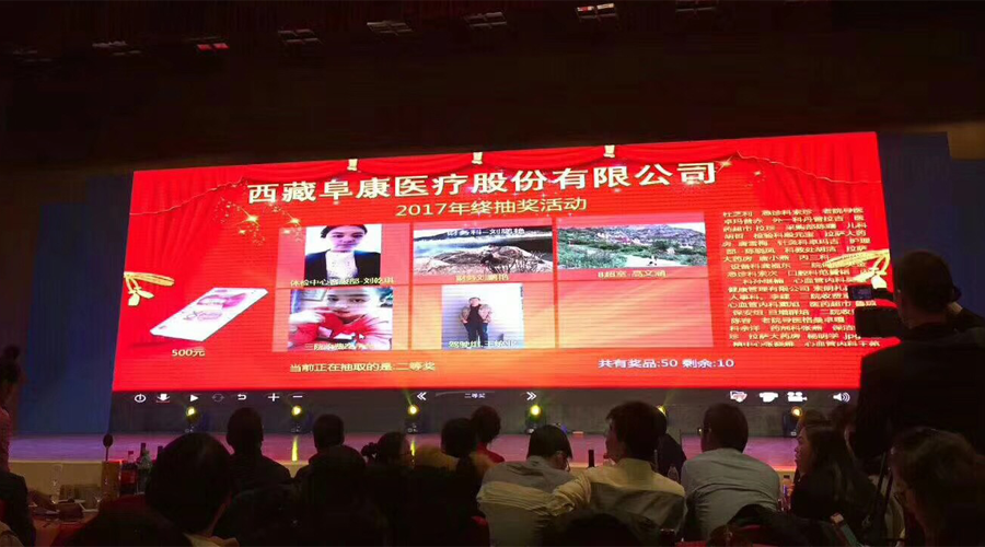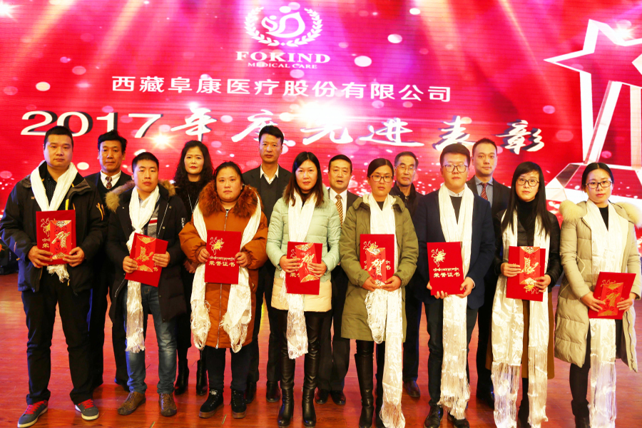 2018年1月10日,西藏阜康醫(yī)療股份有限公司新年團(tuán)拜會在拉薩洲際酒店舉行,下午四點來自西藏阜康醫(yī)院、婦產(chǎn)兒童分院、心腦血管分院、健康體檢中心,阜康大藥房、超市的員工陸續(xù)來到會場。下午五點,主持人劉連福院長宣布會議正式開始,場內(nèi)音樂響起,董事長王斌帶領(lǐng)醫(yī)院領(lǐng)導(dǎo)和特邀嘉賓入場,會場立刻響起雷鳴般的掌聲和歡呼聲。