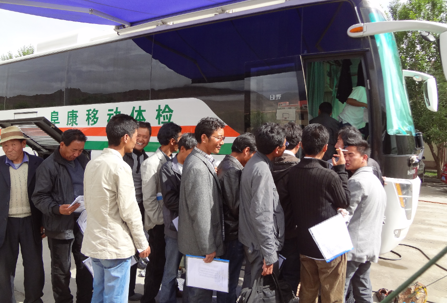 2012年是難忘的一年,是奮勇開(kāi)拓的一年,也是值得紀(jì)念的一年。西藏阜康(國(guó)際)健康體檢中心在王斌董事長(zhǎng)、張德才院長(zhǎng)、德吉副院長(zhǎng)的工作安排下,移動(dòng)體檢車開(kāi)赴日喀則所屬各18個(gè)縣,阿里地區(qū)及3個(gè)縣,歷時(shí)8個(gè)月行程2萬(wàn)余公里,進(jìn)行巡回體檢工作,為廣大的基層工作人員、機(jī)關(guān)干部、學(xué)校教師、部隊(duì)現(xiàn)役軍人以及離退休老干部和廣大農(nóng)牧民群眾進(jìn)行健康體檢。