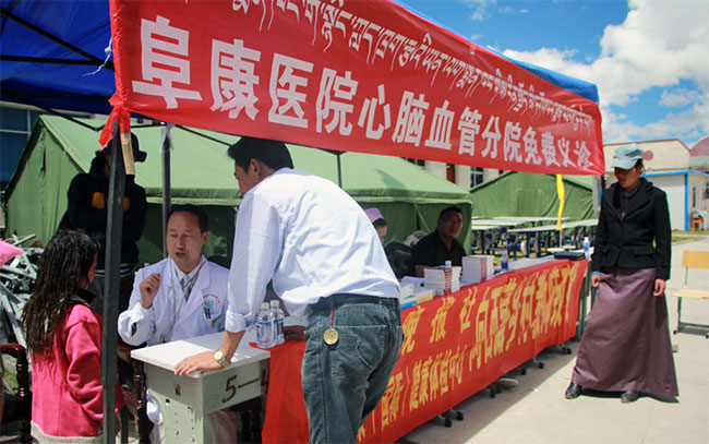 7月9日早上9點(diǎn),由西藏阜康(國際)健康體檢中心、西藏阜康醫(yī)院心腦血管分院義診隊的醫(yī)護(hù)人員帶上價值3000余元的藥品,從拉薩啟程,分別來到位于當(dāng)雄縣最偏遠(yuǎn)的烏瑪鄉(xiāng)第二中心小學(xué),并于第二天趕到位于當(dāng)雄縣海拔最高的納木湖鄉(xiāng)中心小學(xué),為這兩所學(xué)校的師生進(jìn)行免費(fèi)體檢。