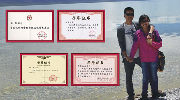 提起老公,她臉上都笑開了花,他簡直可以算得上是中國好丈夫。她一直忙于工作,一不小心就到了二十七八的年齡,父母親都開始著急。剛開始沒覺得什么,可身邊的人都很關(guān)心,于是除了上班最大的消遣就是相親了。有時可能一天有兩三場,但最終也都沒有相互看中。她老公也是通過這樣的方式經(jīng)朋友介紹認(rèn)識的。那會他剛從軍校畢業(yè),勤奮、踏實(shí)、上進(jìn),兩顆年輕的心就慢慢走到一起,開始憧憬以后美好的生活。原定于2008年5月30日結(jié)婚,可因?yàn)榈卣鹚⒓涌拐鹁葹?zāi),只有將婚禮延期。作為一名共產(chǎn)黨員,他十分理解并給予支持“這是你作為一名醫(yī)生應(yīng)該做的,婚禮推遲沒有關(guān)系,我等著你回來”。在她準(zhǔn)備行李的間隙,老公為她準(zhǔn)備了很多干糧,參加救災(zāi)的很多同事都享受到了這份來自老公的“福利”。