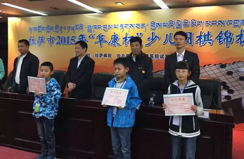 2015年10月6日上年,拉薩市2015年“阜康杯”少兒圍棋錦標賽開幕式于拉薩棋院正式舉行。出席本會議的領(lǐng)導及嘉賓有區(qū)黨委常委、拉薩市委書記齊扎拉,國手九段、山東圍棋隊總教練、拉薩棋院名譽院長、名譽總教練曹大元,拉薩市政府副市長計明南加,中央電視臺圍棋欄目主持人、天元圍棋頻道主持人、拉薩市棋院教練陳盈,西藏自治區(qū)體育局群體處處長姚永剛,以及拉薩棋院院長、西藏阜康醫(yī)藥發(fā)展有限公司董事長王斌。