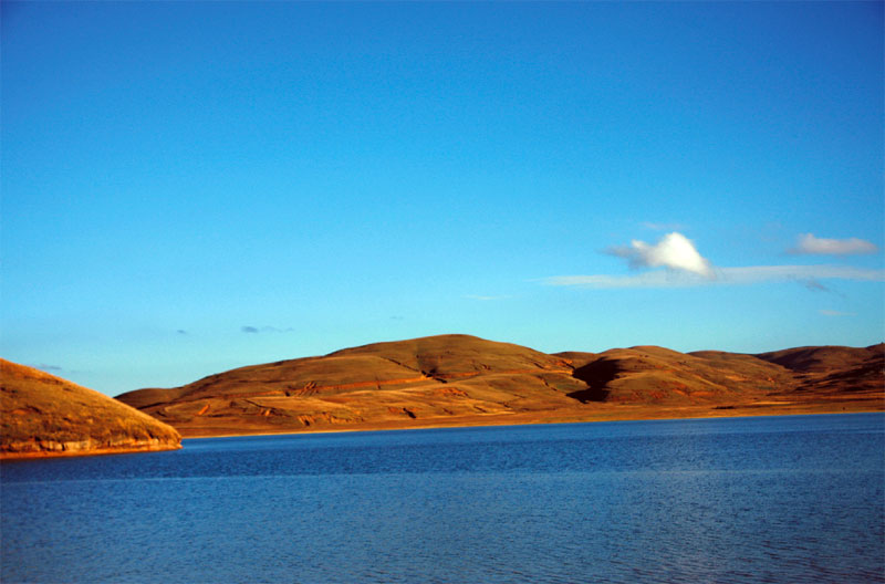 出了宜賓風(fēng)景就大不一樣,時(shí)而沿著高山峽谷在走,時(shí)而又攀升在碧綠的盤山公路。行至昭通,另一片天了,天空蔚藍(lán)蔚藍(lán),云朵開始無遮無攔,大朵大朵的掛在頭頂,而空氣也開始變得稀薄。眼前是大片大片黃褐色的山巒,樹木卻并不多,高速公路狀況極差,路兩旁的民居以平房居多,偶見一些小孩兒,三三兩兩。