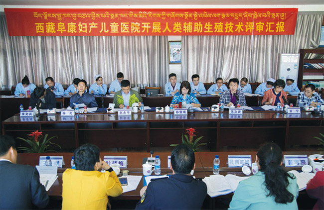 2016年8月19日上午10時許,西藏阜康婦產兒童醫(yī)院人類輔助生殖技術評審匯報會在西藏阜康婦產兒童醫(yī)院四樓會議室正式開評,孫瑩璞、范立青、趙永平、翁寧、林戈、呂杰強、朱文兵等7位國家衛(wèi)計委專家?guī)鞂<疑W臨我院進行評審。扎西旺姆、次仁、姜海燕、匡雪蓮、劉貝貝、葉曉梅、次仁白珍、遲洪濱、劉中娟等9位自治區(qū)、拉薩市衛(wèi)生計生委的領導;西藏大學高原醫(yī)學研究中心主任、西藏阜康婦產兒童醫(yī)院生殖倫理委員會主任歐珠羅布;西藏阜康婦產兒童醫(yī)院王斌董事長、8位院領導以及我院生殖中心各相關人員等參加了本次評審匯報會。