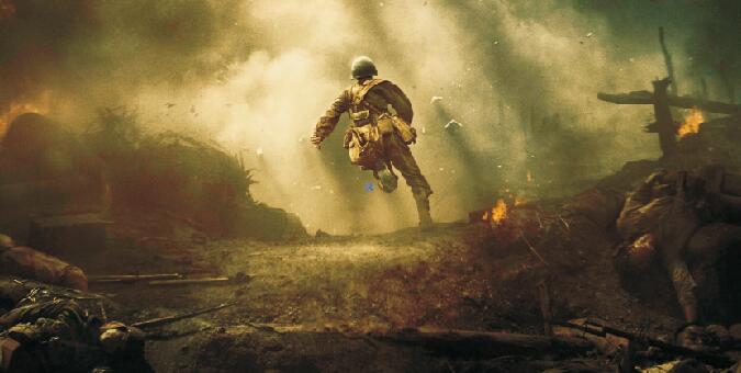 自有聲電影問世以后,好萊塢對(duì)實(shí)感近乎偏執(zhí)地追求,改寫了全球的觀影標(biāo)準(zhǔn),也讓好萊塢后來居上,遠(yuǎn)超歐洲同行。梅爾·吉布森更是擅長(zhǎng)用暴力和血腥表現(xiàn)戰(zhàn)場(chǎng)的實(shí)感和戰(zhàn)爭(zhēng)的殘酷:美軍戰(zhàn)列艦406毫米主炮的轟鳴,勃朗寧重機(jī)槍的子彈呼嘯,M4坦克的陣陣碾壓,還有迸飛的殘肢,爆裂的人頭……絞肉機(jī)般的鋼鋸嶺成了人間地獄,與它極端對(duì)立的正是主人公戴斯蒙德·道斯的醫(yī)者仁心。