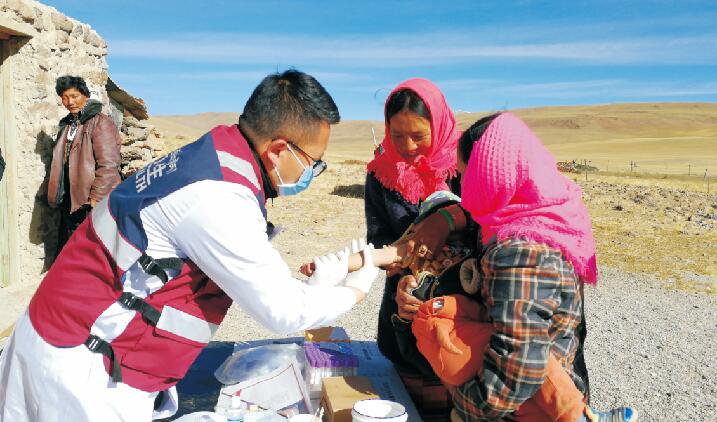 索南,革吉鎮(zhèn)衛(wèi)生院院長(zhǎng),全科醫(yī)生,能接生孩子能看病,包蟲病防治工作任務(wù)繁重,手下的醫(yī)務(wù)人員抽不開身,他親自帶隊(duì)分離標(biāo)本、全血離心,兢兢業(yè)業(yè),工作起來(lái)一坐就是一整天。牧區(qū)篩查他帶領(lǐng)團(tuán)隊(duì)卷上鋪蓋帶上方便面一走就是一兩個(gè)星期,家不要了,娃不要了,路途遙遠(yuǎn),崎嶇顛簸,腰也不要了。