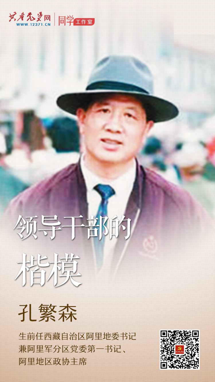孔繁森(1944—1994),山東聊城人。1966年9月加入中國共產(chǎn)黨。1961年8月參軍,歷任濟南軍區(qū)總醫(yī)院警通排戰(zhàn)士、共青團聊城地委常委、聊城地委宣傳部副部長。1979年作為援藏干部赴日喀則地區(qū)任地委宣傳部副部長,后改任崗巴縣委副書記兼縣檢察院檢察長。1988年第二次進藏,先后任拉薩市副市長,阿里地委書記兼阿里軍分區(qū)黨委第一書記、阿里地區(qū)政協(xié)主席。他跑遍了全地區(qū)106個鄉(xiāng)中的98個,行程8萬多公里,與藏族群眾結(jié)下了深厚友誼。1994年11月29日,在新疆考察邊貿(mào)工作途中因車禍不幸殉職。榮獲“全國民族團結(jié)進步模范”稱號,被追授“模范共產(chǎn)黨員、優(yōu)秀領導干部”稱號。