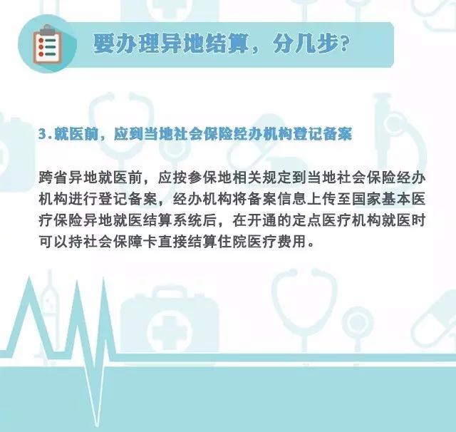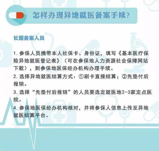 人社部表示,有跨省異地就醫(yī)需求的參保人員,按參保地相關(guān)規(guī)定進(jìn)行跨省異地就醫(yī)登記備案后,可從公布的名單中選擇定點醫(yī)療機(jī)構(gòu)就醫(yī),實現(xiàn)跨省異地就醫(yī)住院醫(yī)療費(fèi)用直接結(jié)算。開通跨省異地就醫(yī)直接結(jié)算服務(wù)之前已備案的參保人員請主動到參保地經(jīng)辦機(jī)構(gòu)更新相關(guān)備案信息。