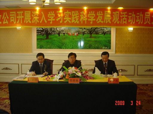 大會(huì)首先由公司黨委負(fù)責(zé)人于廣先同志做動(dòng)員講話。他指出:在全黨開展深入學(xué)習(xí)實(shí)踐科學(xué)發(fā)展觀活動(dòng),是黨的十七大作出的戰(zhàn)略決策,是用中國(guó)特色社會(huì)主義理論體系武裝全黨的重大舉措。他同時(shí)要求:要充分認(rèn)識(shí)在國(guó)投公司開展學(xué)習(xí)實(shí)踐活動(dòng)的重大意義;要突出實(shí)踐特色,確保學(xué)習(xí)實(shí)踐活動(dòng)取得實(shí)效;強(qiáng)調(diào)要加強(qiáng)領(lǐng)導(dǎo),落實(shí)責(zé)任,全面掀起公司和出資企業(yè)學(xué)習(xí)實(shí)踐活動(dòng)熱潮。